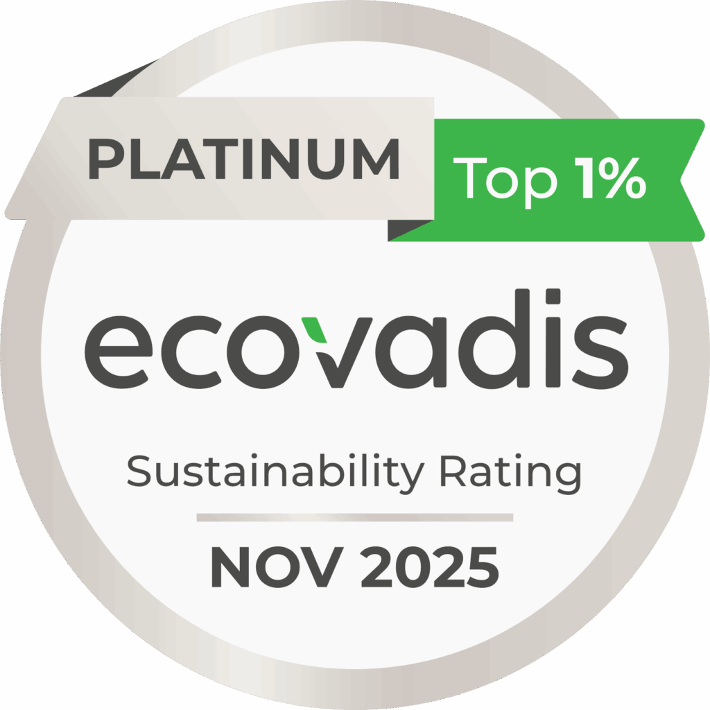 En 2025, pour la sixième année consécutive, la performance de notre engagement RSE nous vaut le statut Platinum d’Ecovadis. Cela nous classe dans le Top 1% des meilleures entreprises de notre secteur en la matière.